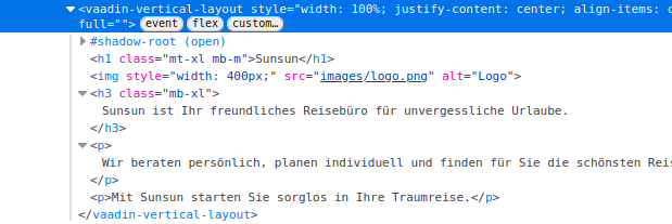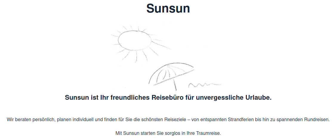 H3 info = new H3("Sunsun ist Ihr freundliches Reisebüro für unvergessliche Urlaube.");