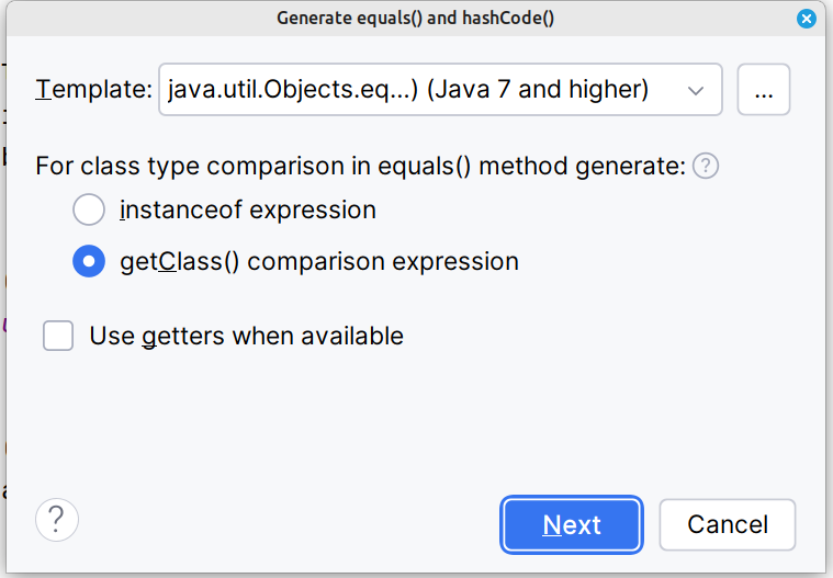 equals wird benutzt, um zwei Objekte auf inhaltliche Gleichheit zu prüfen. Standardmäßig (von Object) prüft equals(), ob zwei Referenzen auf dasselbe Objekt im Speicher zeigen. Oft wollen wir aber prüfen, ob zwei Objekte gleiche Werte haben, auch wenn es unterschiedliche Instanzen sind.